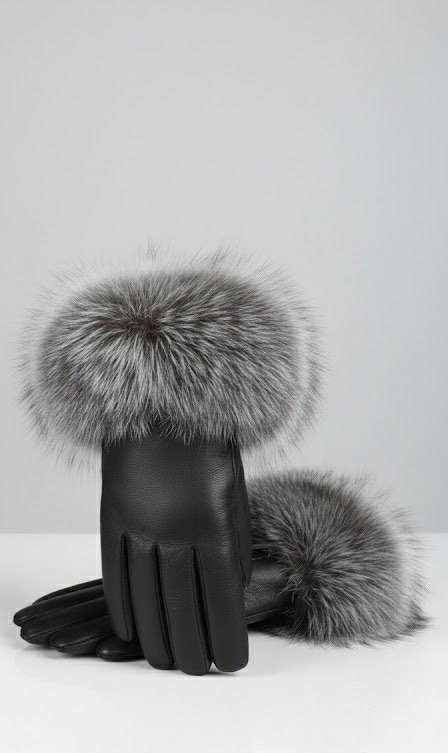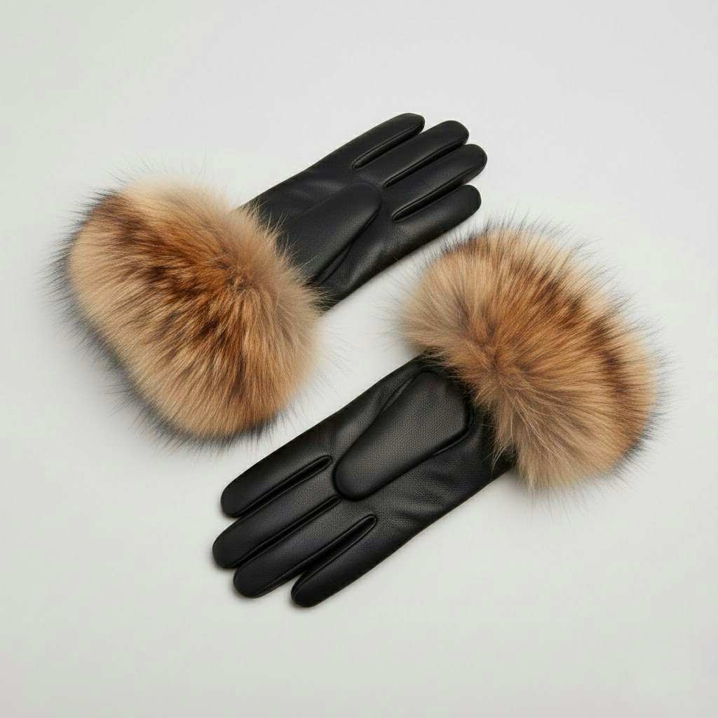Women’s Leather Gloves – 5 Finger Style with Natural Fox Fur Trim
