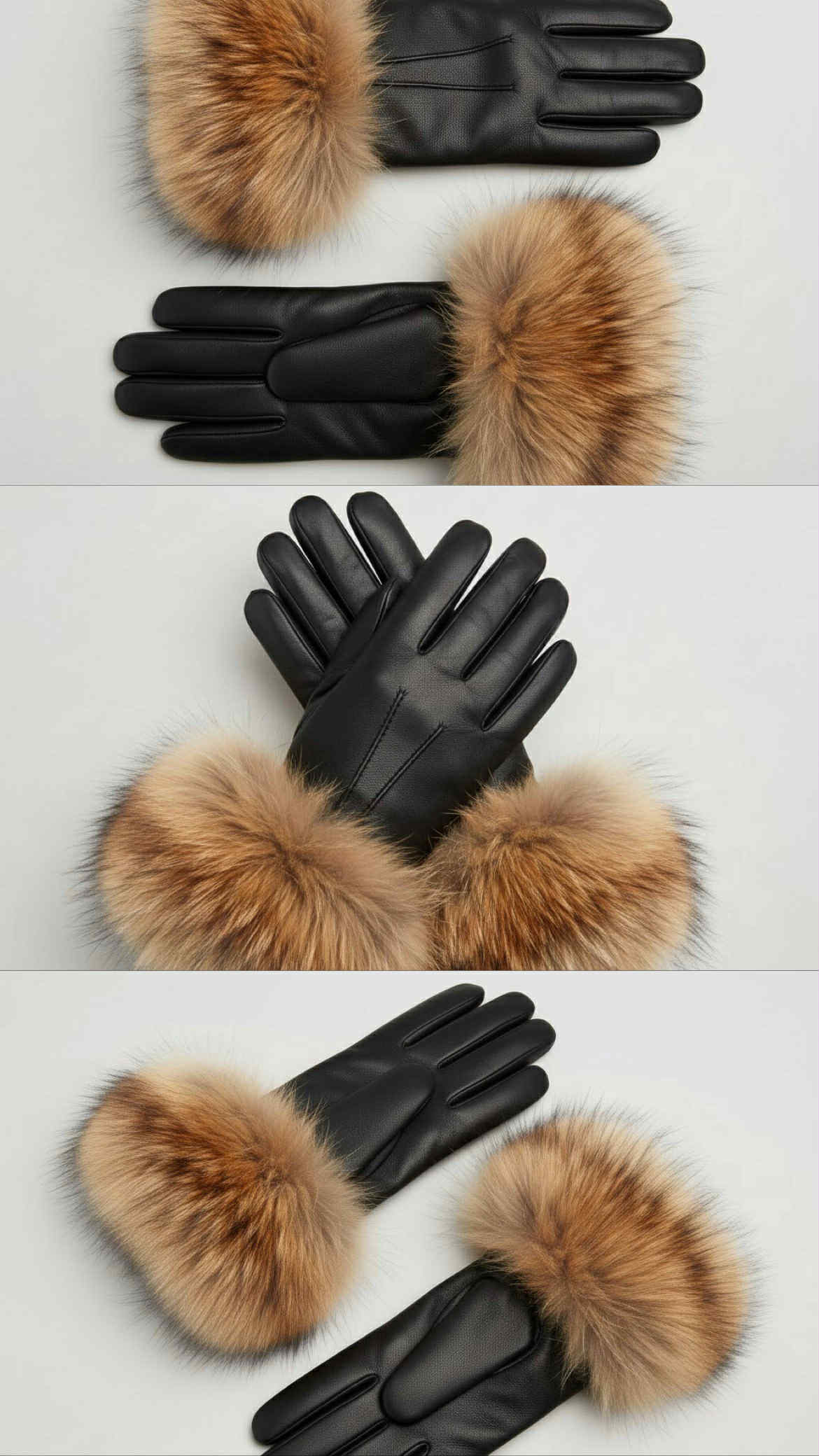 Elegant women’s gloves made from 100% natural leather of the highest quality. The classic five-finger design ensures a perfect fit and maximum comfort. A distinctive feature of this model is the trim made of natural fox fur, which adds a luxurious touch while providing extra warmth.