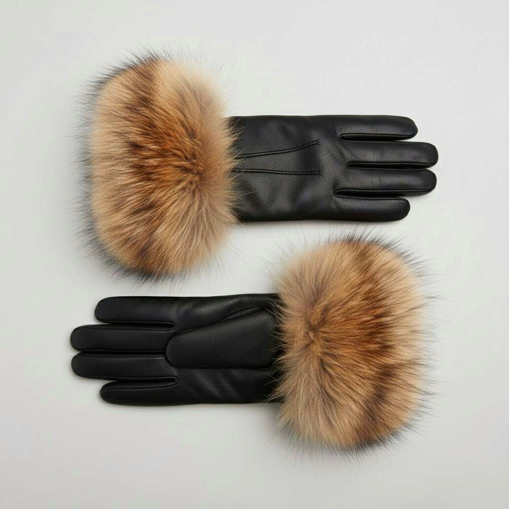 Damskie rękawiczki skórzane – 5 palców z naturalnym futerkiem lisa